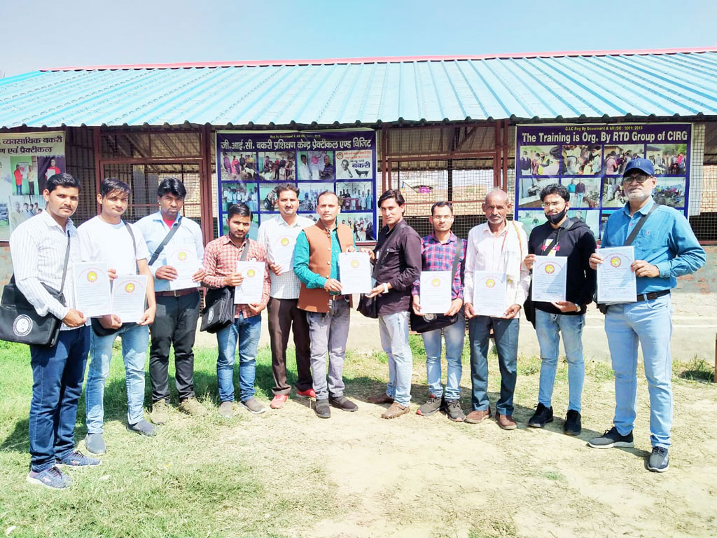 सी. आई. आर. जी. Rt Group द्वारा बकरी पालन के प्रत्येक पहलू, नस्ल की पहचान, नस्ल सुधार, बकरी आवास प्रबंधन, फार्म में किया कलाप, बकरी पोषण व चारा उत्पादन, जनन, प्रजनन, क्रय-विक्रय, सरकारी परियोजनाओं से ऋण (लोन) लेने के लिए प्रोजेक्ट बनाना आदि सभी विषयों पर पावर पॉइंट से प्रोजेक्टर द्वारा गहन प्रशिक्षण कराया जाता है | अंतिम दिन प्रशिक्षणअर्थियों को प्रशिक्षण केंद , मथुरा में इंजेक्शन लगाना, ड्रेसिंग करना, दावा पिलाना, बुखार नापना, खुर काटना, बधियाकरण कराना, ब्रशिंग कराना, डिपिंग कराना, हीट का पता लगाना आदि प्रयोगात्मक कार्यों का प्रशिक्षण केंद्रीय बकरी अनुसन्धान संसथान, मखदूम, फराह, मथुरा के विषय विशेषज्ञों द्वारा दिया जाता है |